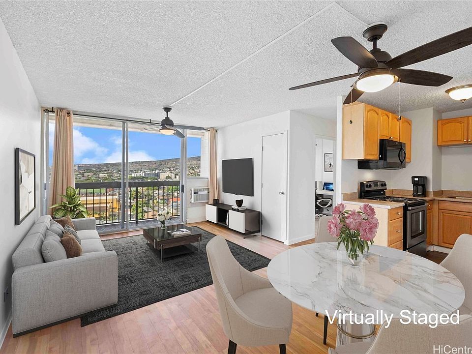 Wonderful opportunity to own a comfortable 2 bed / 1 bath condo in downtown Honolulu with close proximity to Interstate H-1, iconic Liliha Bakery, Foster & Lili'uokalani Botanical Garden (just to name a few). Nestled on the preferred higher floor with scenic 180° city views and ocean views on the horizon. The unit enjoyed an extensive update, giving it a pleasant welcoming experience and making the unit truly turn-key ready. Benefit from an efficient and smartly designed open floorplan that maximizes space utilization. The seamless flow from modern kitchen to the living area creates a spacious feel. Two well-appointed bedrooms added new closet doors, while large floor to ceiling windows invite natural light & enhancing the overall bright and contemporary ambiance. Liliha Square is a secured building located on a cul-de-sac with community laundry and a resourceful on-site manager. This is an excellent choice for first time home buyers and investors. Some photos have been virtually enhanced.