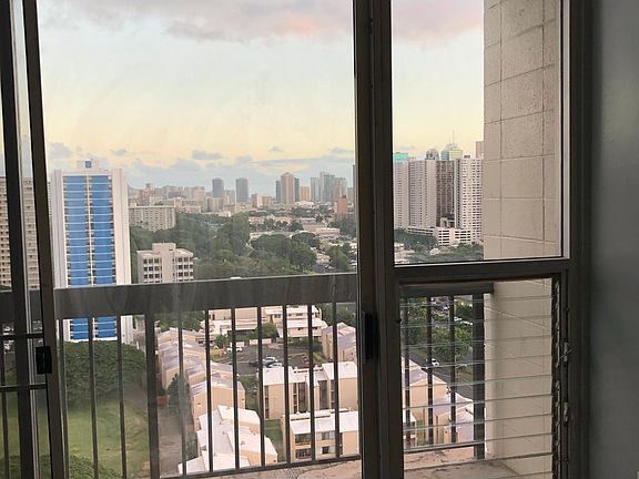 A must see!! Completely renovated top floor high ceiling condo unit with 2 bedrooms, 1 bathroom, and 1 covered parking next to the building entrance. Everything NEW - New paint, cabinets, quartz countertop, oven/range, refrigerator, ceiling fans, flooring , toilet, shower., doors, medicine cabinet, closet, bathroom accessories, lighting. A very convenient location with Times Supermarket, Nice Day Chinese Seafood Restaurant, Subway , beauty salon, bank, doctor office, bakery and other shops downstairs of the building. Close to bus line, school, and library. Secured building with resident manager on site. Small lanai with great views. Rent includes water, sewer, and parking. One year lease. Security deposit 1 month . No pets. No smoking. Building is located in Liliha Square. Once you see the unit, you will fall in love with it. owner pays for water and sewer; tenant pays for electricity
