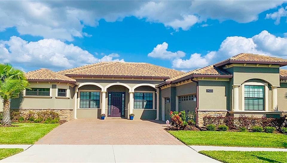 Have it all on ONE floor!! Don't miss this rare opportunity to own the popular STOCKTON GRANDE home on one of the most popular cul-de-sac streets in the ChampionsGate Country Club section. This like-new 4BR/3Ba/3-car garage home w/huge screened lanai overlooking the 16th fairway from its high ridge has everything you need and nothing you don't. Golf membership is included with homeowner fees.This home has been meticulously maintained and, WITH NO STAIRS TO CLIMB, the spacious & open first floor has it all: gorgeous kitchen w/large pantry opening into the family room w/lovely faux wood carefree tile floors throughout, a huge MBR suite w/his & her closets, MBa w/soaking tub & walk-in shower, living room, formal dining area & 3 more bedrooms, large laundry rm and a huge 3-car garage.The Oasis is a 14,000 SF clubhouse with a lazy river, wading pool, quiet pool, poolside cabanas, Tiki Bar, exercise center, meeting rooms, restaurant, business center, concierge desk and a theater showing nightly movies. If that's not enough, the new Plaza Club will be exclusive to Country Club owners & will be yours to enjoy as well!! It will include two pools, a restaurant, pickle ball courts, steam rooms, exercise facility, aerobics room, and a meeting room. Champions Gate has easy access to I-4, all the Orlando attractions with Disney practically next door, shopping and restaurants are nearby. The last home to go on the market on this exclusive and quiet street sold in FIVE DAYS! Don't miss this beauty!