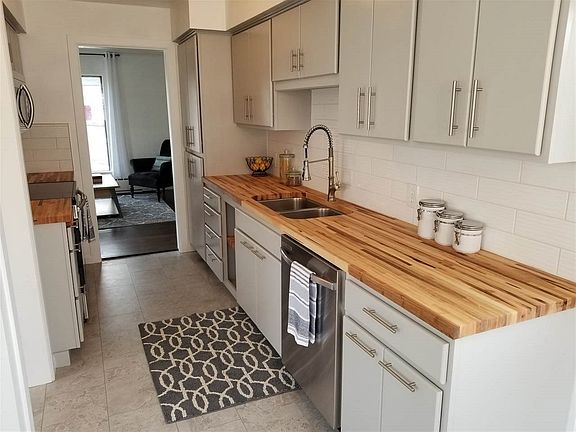 Industrial meets Cottage!!! Immaculate 3 bed, 2 bath bungalow in quiet neighborhood. This home offers a chefs dream w/ tons of storage, butcher block counters, & new stainless appliances! E-gress bedroom in bsmt, w/ 2 closets & attached 3/4 bathroom. Hardwood floors, gas hotwater heat, elaborate tile work in both bathrooms, rec room w/ stone fireplace & built in bar. New exterior paint, huge over-sized 1/4 acre lot, plus 2 shops -- one approx. 23x29 & other 29x43 which includes gas furnace & 200 amps!