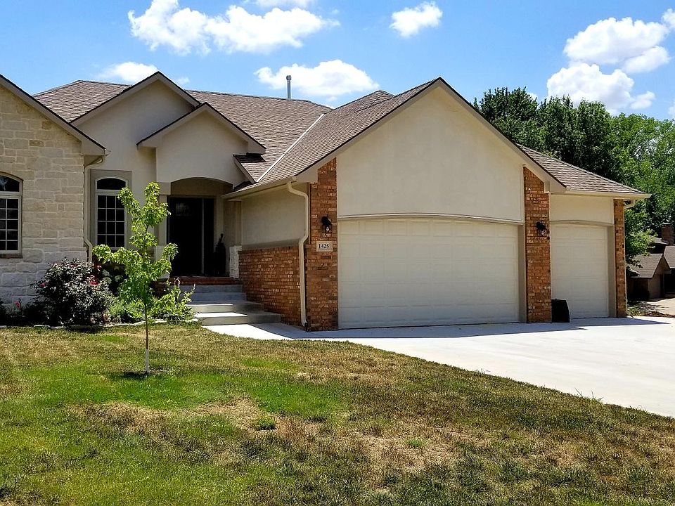 LUXURY HOME in DERBY KANSAS! Located just minutes from schools, Derby Golf course, and lots of restaurants and shopping! This NEW custom-built home is located in the North part of Derby. It offers over 3400 sq. feet with a total of 3 bedrooms, 3 baths, full finished basement including a wet bar. The open concept main floor has vaulted ceilings, rich wood flooring, walk-in pantry, and breakfast bar that opens to a beautiful living space with fireplace and walk-out deck. The master bedroom has tray ceiling, master bath with tile shower, whirlpool tub, and large closets. The split bedroom plan offers two additional bedrooms and bath on the main level. The full-finished basement offers additional living space for family and guests with two additional bedrooms, a full bath and a bar is included. 3-car garage and a quiet cul-de-sac offers perfect Derby living! Lessor is responsible for all lawn mowing, gas, electric, water, trash, internet, cable.