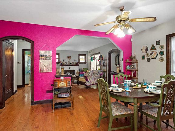 This adorable 1.5 story home sits atop a beautiful large corner lot. Full brick home offering large living room features a large picture window as well as stained glass windows and a fireplace. formal dining room, bright kitchen with stainless steel appliances that stay. main floor bedroom, bathroom, and bonus room round out the main level. Hardwood floors throughout most of the home. Upstairs offers two large bedrooms one with an alcove. The unfinished walkout basement is ready for your finishing touches. Detached two-car garage, large asphalt paved area, and additional parking. The seller is selling this home in as-is condition, seller will do no repairs, provide any inspections or permits. Call for your private showing today.