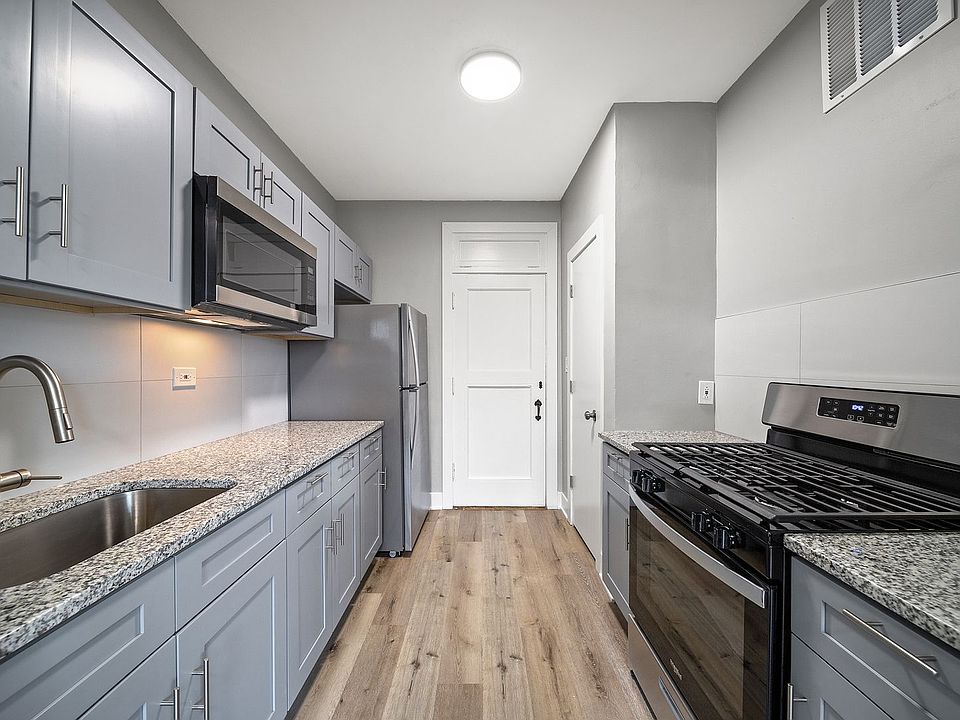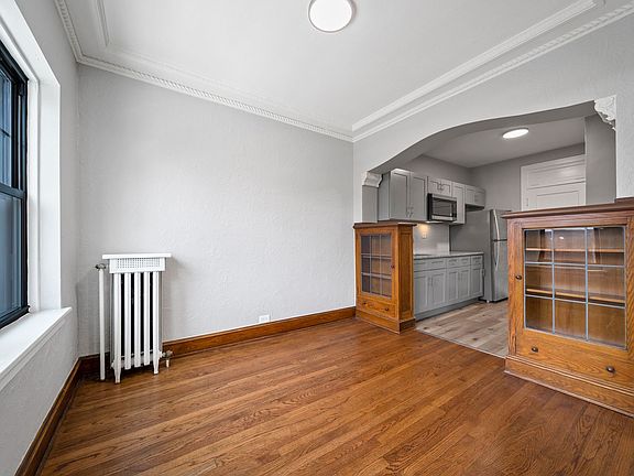 This Studio Apartment features new granite countertops, new cabinets, and brand new stainless steel appliances. Brand new double pane insulated windows keep you warm in winter and cool in summer, and compliment the newly refinished vintage hardwood floors and ornate moldings throughout the apartment.