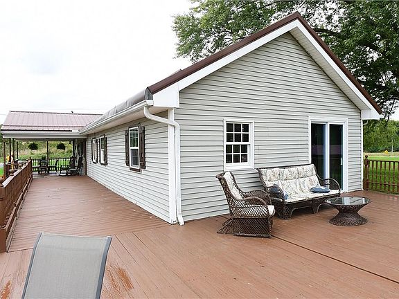 just under 4.5 acres of well maintained loveliness in Laurel school district ! So close to Moraine State park & McConnel's Mills for more outdoor recreation. You will love the wrap around deck that you can access from the master bedroom to enjoy your day. Summer gatherings in the 33x22 pavilion to enjoy your outside space. The 24x30 out building can have multi uses; cars, horses or boat storage ! inside the home you will find a spacious kitchen to cook in with newer cabinetry, always plenty of room at the four seat breakfast bar for meals. You can also enjoy the generous room sizes this home has to offer. metal roof in 2016, Furnace 2014. A space for a powder room off of master bedroom