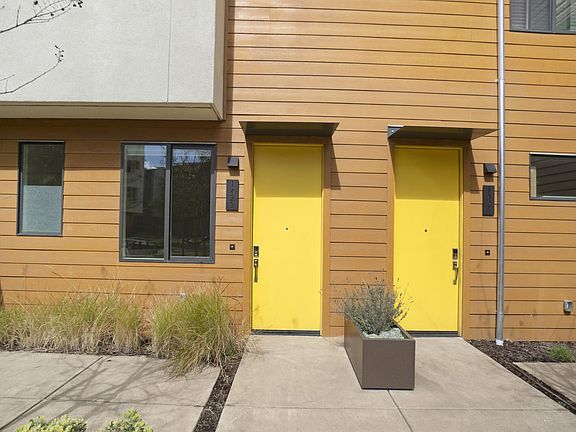 Beautiful townhome in West Oakland, now ready for love! This light-filled entertainer's dream is designed for efficiency and comfort. Central AC, paired with NEST thermostats, dual-paned windows, and grid-connected solar panels installed. Spacious open living/dining with high ceilings and recessed lighting perfect for indoor lounging, plus a private patio out front for relaxing outdoors. Enjoy a view of the quiet neighborhood while having your morning coffee in the adjacent Juliet balcony facing Pullman Way! Sleek open kitchen features stylish subway backsplash, expansive countertops, and ample flat-panel cabinetry for easy home cooking. High-end stainless steel appliances installed, including a side-by-side refrigerator, dishwasher, microwave, and an oven range. Laundry is also a breeze with in-unit laundry installed. Two-car garage offers side-by-side parking for 2 vehicles, plus extra storage space. 2 generously-sized bedrooms finished in carpet feature private ensuites for maximum comfort and privacy. Bonus room on the first floor is perfect for a home office or an extra bedroom! Your new home is part of the Station House South development on Pullman Way. Right across your future home is the bocce ball court, verdant landscaping, picnic area, and mature trees along the pathway. A commuter's paradise - the West Oakland BART Station is within mere walking distance, making Uptown, Berkeley, and Downtown SF easily accessible. The I-880 and I-80 are also within easy driving distance. Smoking allowed:No