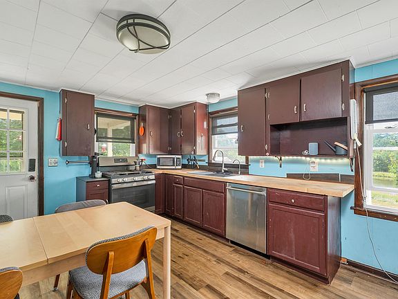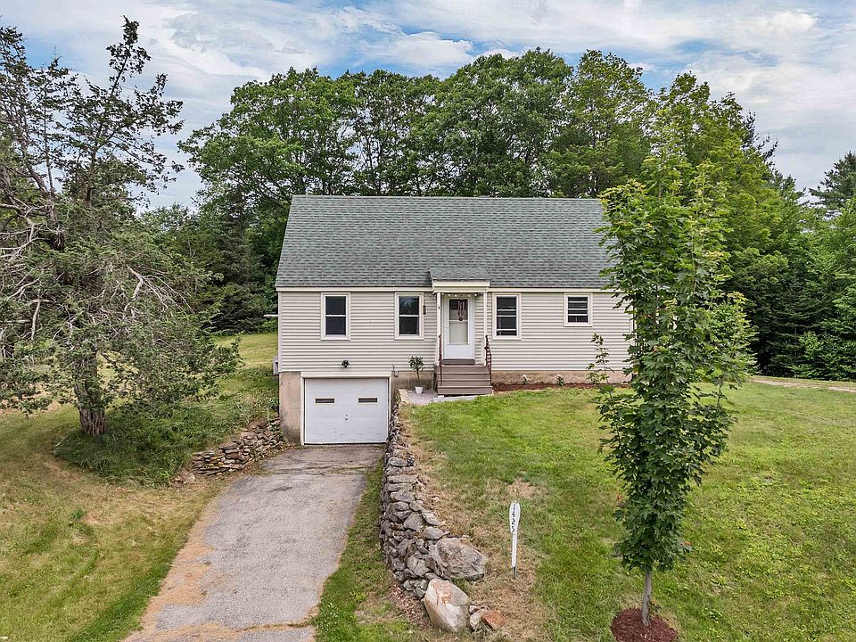 Welcome to this lovely home in scenic Gilmanton, NH! This charming 3 bedroom, 1 bathroom home sits on a beautiful 4.3-acre lot featuring its own private pond, perfect for peaceful views, skating in winter, or enjoying wildlife year-round. Built in 1954, this home has seen several upgrades over the past years while maintaining its cozy character. Step into the sunlit kitchen with ample cabinet space, stainless appliances, and a casual eat-in area. The living room offers a bright, comfortable space for gathering or relaxing by the pellet stove on chilly days. Hardwood floors run throughout much of the main living areas, with updated flooring in select rooms. The first-floor bedrooms and bath provide flexible living options, while upstairs you'll find additional bedroom(s) with unique built-in shelving adding charm and usable space, perfect for 2 bedrooms or office/mixed use spaces. Downstairs, the basement provides direct access to the one car under garage, laundry area, and generous storage, play, or workshop space. Outside, enjoy your expansive yard, perfect for gardening, play, or small homestead dreams, with the pond as your natural focal point. Recently updated septic, well/water system, shed, and mini splits have primed this home for the next owner. Don’t miss your chance to own a slice of New Hampshire’s beauty with room to grow and make it your own! Showings begin at the open house 7/12!