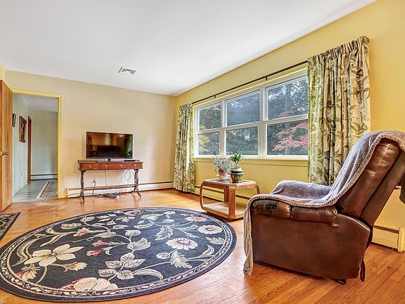 WHAT A DEAL! You can't pass this one up. RANCH w/ FULL walkout basement and ADDITIONAL STORAGE HOUSE on the property. Storage is certainly not an issue here. 4.73 ACRES of land surrounded by COMPLETE PRIVACY. Hardwood flooring throughout the home, 1 full bath, laundry area & COVERED PORCH with access to the walkout basement & the side yard. Come create something incredible here. BONUS storage house is perfect to do crafts or store all of your things. Perfect for the hobbyist that likes to stay close to HOME. Plenty of parking * Hot water baseboard heat & central air conditioning. Nicely maintained & well cared for. Bring your ideas, don't miss out. This is a unique opportunity and the value is incredible. Hope to see you soon.