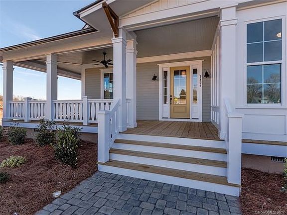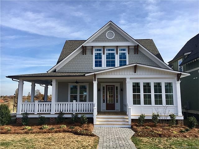 Popular Huntington model on corner lot with wrap-around porch. Open floor plan featuring bedroom and full bath on first floor. Built-ins in entry hall and family room surrounding fireplace; GE appliances with upgraded range hood and gas cooktop; Butler's Pantry off of kitchen; oversized 2-car detached garage. Riverwalk is a mixed-use community w/ walking trails, retail and restaurants located along the Catawba River in Rock Hill, SC.