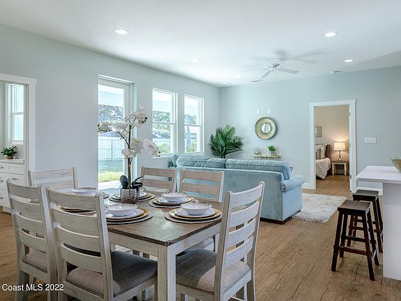 NEW CONSTRUCTION. On S. Banana River Drive Just steps from the Banana River. This 4 Bedroom 2 Bath, 2 car garage Coastal inspired home has it all. Tall ceilings, Split bedrooms, Open floor plan, Master with walk-in closet, wood plank floors throughout White shaker cabinets, Quartz countertops, large back porch. and a paver driveway. Hurricane rated Impact glass windows and doors, so no need for shutters. 1 year builders warranty so need to worry. Oversized .32 acre lot has views of the Banana River, and huge shade producing oak trees in the backyard. No HOA bring your boat or RV. Just minutes to the beaches, shopping and dining options Quickly get to the major roadways SR 520, 528 (BEELINE/BEACHLINE), and I95. Orlando International Airport is 1 hour away, Patrick Space Force Base Blue Origin, Space X less than 30 minutes away. Owner is a LREA. Completion target March 1 2023.