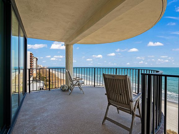 Stunning Direct Oceanfront 3-Bedroom End-Unit Condo – Fully Renovated & Turnkey! Excellent investment rental or second home! Experience the ultimate in coastal luxury with this direct oceanfront 3-bedroom, 2-bath end-unit condo, featuring an unbelievable, sophisticated renovation. Sold fully furnished and completely turnkey, this exquisite home has never been rented. One of the most breathtaking features of this condo is the expansive corner two-panel floor-to-ceiling window and brand-new hurricane-impact glass sliders, offering panoramic ocean views and unobstructed vistas along the north end of the strand. Imagine relaxing in your living room and looking down the entire coastline!  Updated kitchen with white wood cabinets and drawers, stainless steel appliances, granite countertops with undermount sink and breakfast bar, and a gorgeous glass tile backsplash—all while maintaining a stunning open view of the ocean.  Additional upgrades include: new HVAC was installed in 2024 and can be controlled by Nest thermostat, tiled flooring, smooth ceilings, upgraded light fixtures, full sized washer and dryer in laundry closet, new bedroom windows, whole condo Whirlpool water filtration system, crown molding.   The spacious primary suite boasts his & her closets, a beautifully renovated spa-like en-suite bath with a huge walk-in shower, frameless glass doors, custom-height white wood vanity with granite tops, comfort-height toilet and stylish fixtures. The guest bath is equally upgraded with a new vanity, toilet, fixtures, and a charming hand-painted fish mural.  Step onto your huge private balcony—20’ in length with a 13’ semicircular extension—perfect for outdoor entertaining while enjoying breathtaking ocean views!  Resort-style community amenities include: Oceanfront pool, hot tub, kiddie pool, and grilling/picnic area, owner-friendly pet policy, four levels of covered parking. Golf carts & motorcycles allowed in overflow parking, new elevators were installed in 2022, new roof in 2019!  Located in the heart of Crescent Beach, North Myrtle Beach, this exceptional condo places you right on the sandy shores of the Atlantic, with easy access to shopping, dining, and entertainment.  Your dream beach home awaits—schedule a showing today!