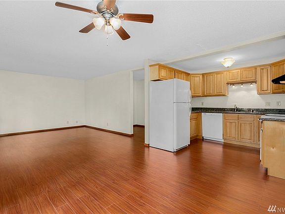 Spacious, garden level condo with easy entry access from the parking lot. The unit features an open kitchen with plenty of cabinet space as well as updated laminate flooring throughout. Large slider opens to ground floor patio with peek-a-boo views of Benson Hill's sunsets. Enjoy the summer weather at the pool, clubhouse, and sport courts. The association does not have a rental cap. Close-in access to downtown Renton, I-405, and Hwy 167.