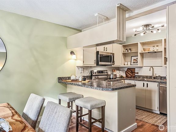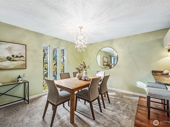 Welcome home to this spacious, turn-key 1 bedroom, 1.5 bath retreat! Enjoy an open living and dining area that flows to a private, tree-lined balcony—perfect for relaxing outdoors. Freshly updated with brand-new carpet in the living room and bedroom. Community amenities include a pool, clubhouse, and athletic courts, with HOA dues covering water, sewer, and garbage. Conveniently located just 15 minutes to SeaTac and downtown Bellevue, with quick access to I-5, I-405, and Hwy 167. Ideal for first-time buyers, downsizers, or investors—pet-friendly, no rental cap, and FHA approved! Comes with a private parking spot, shared laundry in-building, plus plenty of guest parking.