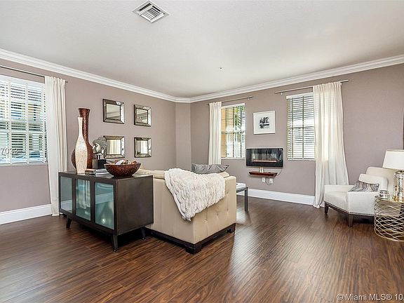 Gorgeous West facing corner townhouse with 3 bedrooms, 2.5 baths and 2 covered car garage and a loft. The Sycamore is the most sought layout in Cobblestone. Finished in beautiful creamy white with a soft grey glazed the kitchen island granite top embodies solidness and refinement, it features enough space to prepare your meals, consume it and clean afterwards, the off white wood cabinetry and stainless steel appliances add an elegant character to the kitchen. Beautifully and tastefully interior showcase high ceilings laminated wood flooring throughout, crown molding and impact windows. The family room leads you outside to the private courtyard, Spacious master bedroom with garden view balcony give you the feeling of a single family. Come see for yourself and make this your new home.