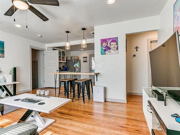 Gorgeous updated home in the heart of Oklahoma City! This 3 bedroom, 2 full bathroom one story home is located in the Stanford Homes Addition. Spacious open floor plan features 1 living room & 1 dining area, stunning original hardwood floors, interior laundry area, sleek modern design & tons of natural light. Kitchen has granite countertops, updated cabinets, stainless steel appliances including refrigerator, modern chevron pattern tile backsplash and tons of room for storage. The master bedroom suite is impeccable & has a stone accent wall, large closet, updated heated anti-fog mirror & spacious sleek walk-in shower. Split floor plan with 2nd updated full bathroom and 2 guest rooms on the opposite end of the home. Refrigerator, washer & dryer included. Huge Backyard features a hot tub and is fully fenced with chain link fence. Concrete driveway has a new 2 car carport with lots of room for additional parking. Updated plumbing, updated electrical, upgraded light fixtures, updated cabinetry, updated doors, updated hardware, updated kitchen and updated bathrooms. This is the perfect home for someone looking to move in and immediately start enjoying it. Come make it yours today!