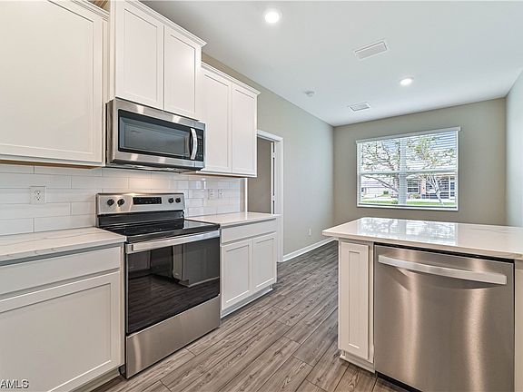 Home is CO. The Islamorada is a spacious oasis located in the desirable area of south Cape Coral. This new-construction home hosts 4 bedrooms and 2 full bathrooms, as well as an abundance of living space and a plethora of luxury upgrades. Stainless steel Whirlpool® appliances including a refrigerator with ice maker, spacious quartz or granite countertops, 42” upper cabinets with crown molding, an undermount kitchen sink, Moen® faucets, a convenient outlet with USB charging capability, paver driveway, impact resistant windows and doors and an attached two-car garage with a Wi-Fi-enabled garage door opener. The Islamorada showcases a master suite with a walk-in closet and a double-sink vanity. In addition, residents living in Cape Coral will enjoy convenient access to the best shopping, dining and entertainment around.