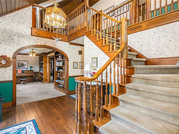 Beautiful stately home nestled in the woods with a private retreat feel on a 3.47 acre lot. Warm and cozy den with wood burning stone fireplace and built-in bookcases. Lots of storage through out the house including a walk-in attic. Relax on the private screened porch or on the deck from the master bedroom. Large master bedroom with newly remodeled bath, featuring a walk-in tile shower, duel vanity, and soaker tub. Upstairs has 2 large bedrooms, a bonus area and a loft. Garage is extra large with utility sink and storage closet. Loads of potential in the unfinished basement with an office space for those who work from home. Tankless water heater and natural gas whole house generator.