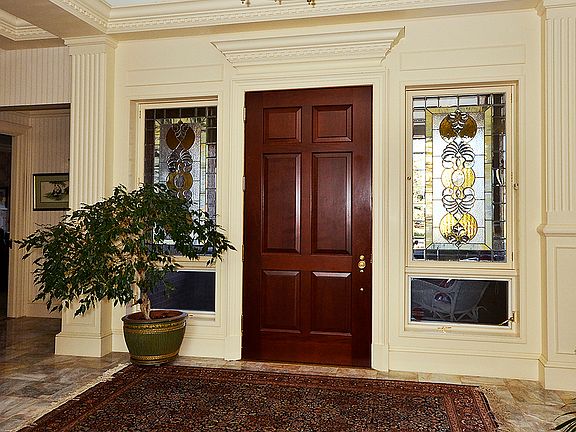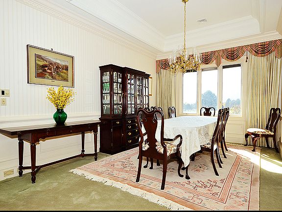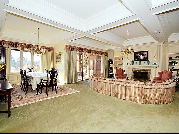 The great room and formal dining room feature a fireplace, built-ins and walkout to covered patio and enclosed courtyard. The formal dining is centrally located between the great room and kitchen. The spacious kitchen includes tile floors, custom cabinets, lots of preparation space, planning desk and informal dining area. The study is located on the main level with custom cabinets and built-ins, paneling, crown molding and fireplace along with wonderful views. Both master suite and second main level bedroom include adjoining baths and sitting areas. The lower level bedroom includes a walk-in closet. The exquisite custom woodwork such as crown molding, cabinets and coffered ceilings are visible throughout this elegant home.