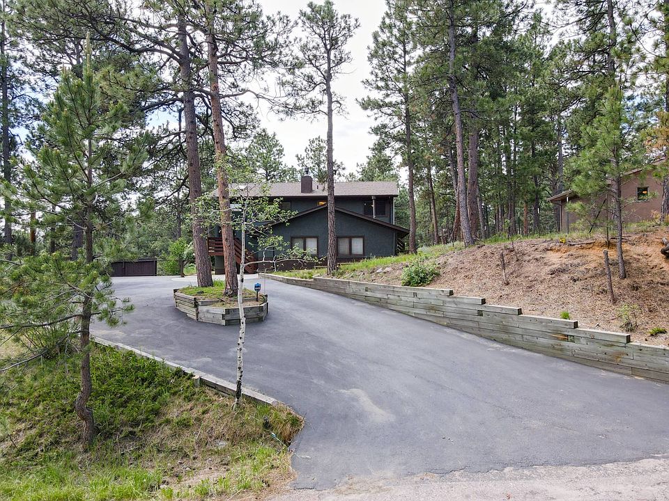 Stunning Mountain Retreat in the Heart of Northern Colorado Springs Discover your dream home in the prestigious Pleasant View Estates, where mountain serenity meets urban convenience in northern Colorado Springs. Nestled among towering Ponderosa Pines on a sprawling 1/2-acre lot, this exquisite property offers a tranquil escape with abundant trees, a large greenhouse, a charming chicken coop, and a relaxing seating area perfect for wildlife watching or quiet reading. Located in the award-winning Academy School District 20, this home combines the best of Colorado's natural beauty with top-tier education and proximity to city amenities. Modern elegance meets cozy comfort - Step inside to find soaring ceilings that highlight a beautifully remodeled kitchen, featuring soft-close cabinets, four lazy-susan carousels, full roll-out drawers for ample storage, sleek Corian countertops, and newer stainless steel appliances. The open layout is perfect for entertaining, with the living room centered around a cozy, stone-clad Heat-and-Glow gas fireplace, complete with a remote control for effortless ambiance. Enjoy indoor-outdoor bliss and unwind in the enclosed sunroom, an ideal retreat for soaking in the surrounding nature, or step out onto the expansive wood deck for al fresco dining and relaxation. The lower level boasts a spacious recreation room with direct access to the scenic backyard, offering additional bedrooms perfect for teens, guests, or private retreats. Thoughtful details throughout this home which reflects meticulous care, from solar shades on the skylights with remotes in the kitchen and master bedroom skylights offering bright light on demand. Enjoy soft-close linen doors, premium finishes, and an oversized 23x23 garage to accommodate cars, trucks, and extra storage plus plenty of paved spaces for guest parking. Embrace the Colorado lifestyle with this rare gem-mountain charm, modern upgrades, and the unbeatable location of Pleasant View Estates in Academy School District 20. Your private oasis awaits!