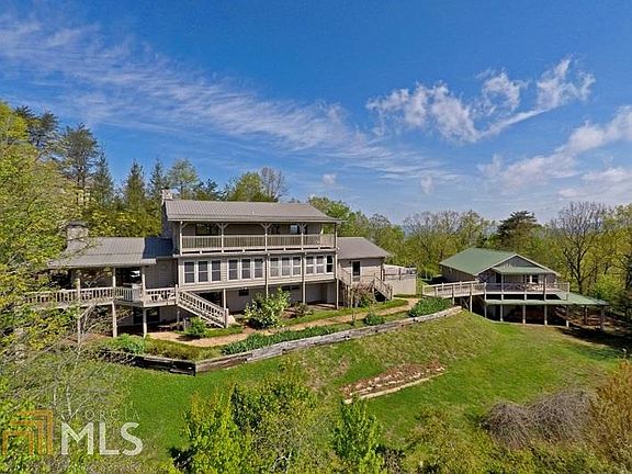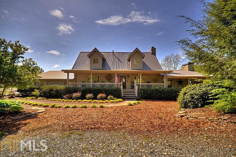 Mountain living at it's best with this 4BR/3BA LOG HOME perfectly situated on 4.34 private acres w/YEAR ROUND LONG RANGE MOUNTAIN VIEWS! Fantastic location, less than 5 miles from town w/all paved roads. Beautiful open floor plan w/vaulted ceiling/exposed beams; 2 woodburning fireplaces, spacious rooms; fully equipped kitchen w/granite counters, lovely keeping room w/dining area. Be "wowed" with huge sunroom to take in the views. 2 BR on main. Generous master suite on upper level (2 walk-in closets) & doors open to full length porch. Finished terrace level w/guest suite, workshop area & storage galore! 2 car garage & NICE BARN w/double doors, there's 1200 sq ft on each level of barn, upper level is perfect for future guest apartment.