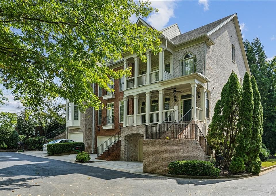 Gated intown community of just 31 homes full of greenspace where you can truly feel the sense of community. A tree lined street leads to your home across from greenspace/gazebo and backed by trees and a grassy knoll. This all brick, family sized END UNIT has 8 extra side windows and double stacked front porches. The main floor features a foyer with separate spacious DR, 10' ceilings, picture & crown molding, massive windows & transoms, and hardwood floors. The spacious chef's kitchen includes double ovens, 36' cooktop with exterior vent, huge breakfast bar, and a pantry loaded with built-ins. Kitchen flows seamlessly into the gracious family room featuring fireplace, built-in cabinets and book cases, & 8' tall windows/transoms cross the back of the home. Master Ste w/ hardwood floors, 10' ceilings, a massive walk in closet complete with California Closets + LUX bath with sep. shower and jetted tub, dual vanities, make-up counter, and WC. Master sized secondary bedroom suite opens to front porch and also features a deep California Closets lined walk-in closet. Top floor suite is large enough to flex as a media room, has several large closets, and opens to stand-up attic storage. Enormous ground floor bedroom ste or rec room opens to a covered patio protected by an underdeck roofing system. Ample room in garage for storage, hobby space, and an extra refrigerator. Modern system updates include 3 programable Carrier HVAC systems & 1 yar old roof with Architectural shingles. 2 car garage, 2 car driveway parking, & nearby guest parking available! Amazing intown location with great sidewalks walkable to shopping/restaurants/gym and only a 5 minute commute to CDC, Emory, VA hospital, & CHOA. Home is about 3760 sq ft of finished space.