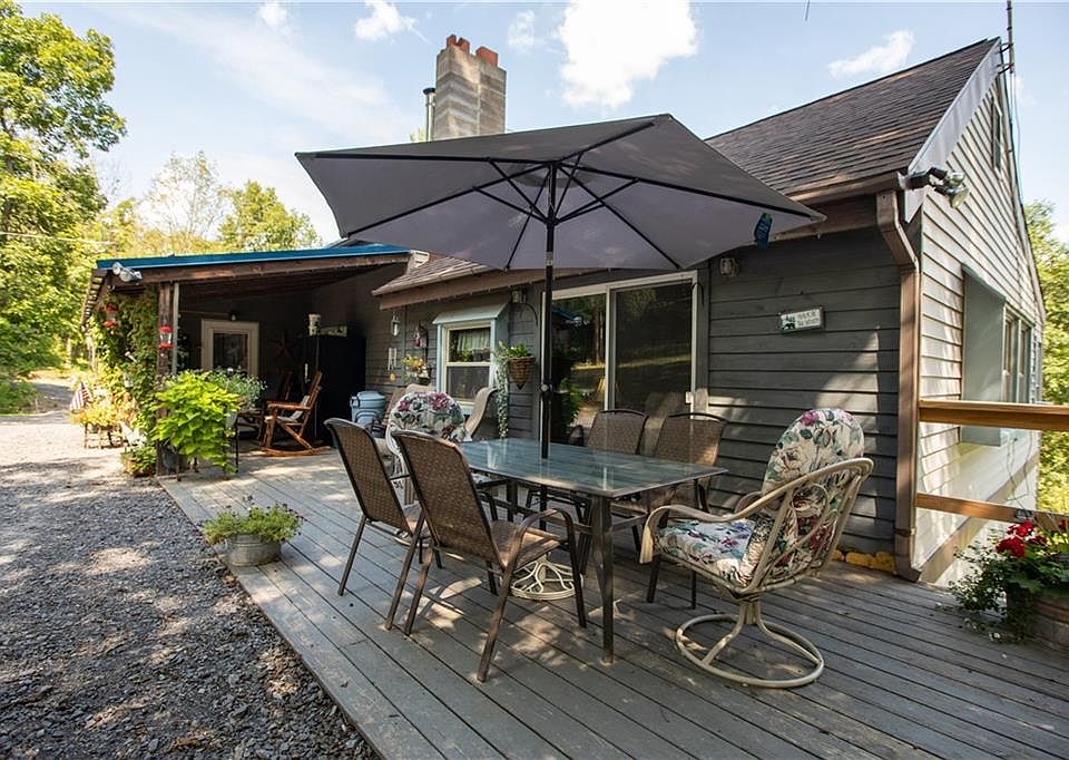 A slice of heaven! Panoramic views abound from all vistas of this 49.4 acre property that backs up to 300 acres of state land (Hi Tor). 2 bedroom, 1 bath cozy home. Inviting mudroom/laundry, sunlit kitchen featuring natural wood and brick, Dining room can be either formal or living/dining combo. Master bedroom has an amazing deck. Second floor loft and bedroom. Minutes from Canandaigua Lake or downtown. Tons of trails and treestands.
