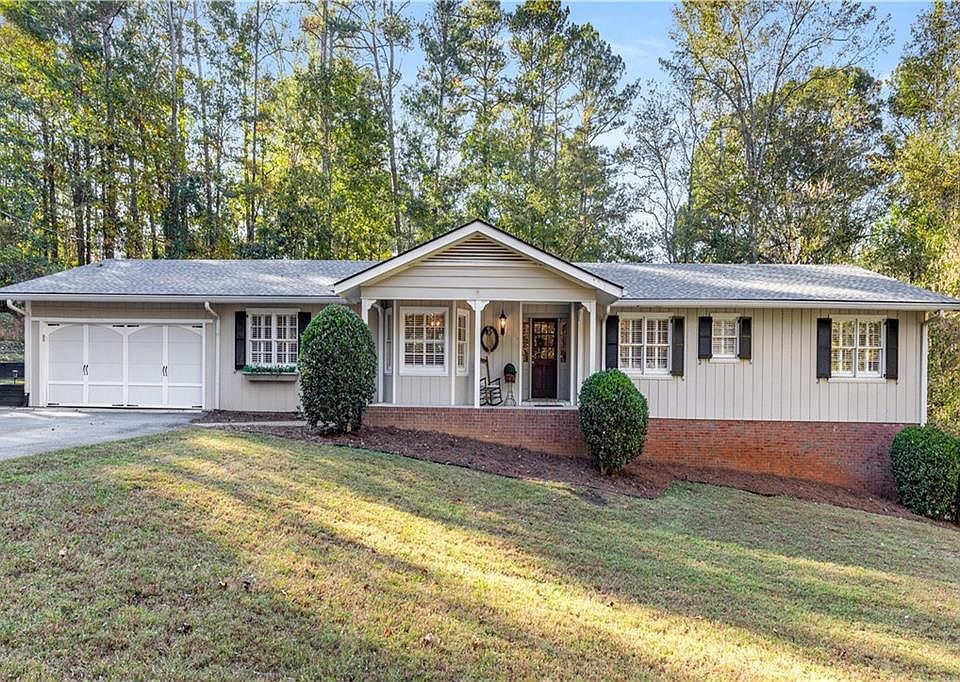 Enjoy Milton countryside living in this meticulously appointed ranch-style farmhouse, situated on more than two gorgeous non-HOA acres in the rolling equestrian landscape of Milton, GA. Enter the property via a winding driveway which leads to a front-entry two car garage and an expansive, traditional front porch. As you enter the foyer, you are greeted with a spacious, open dining room to the left, along with an office/study/library that connects to the English style kitchen with a painted wood plank ceiling and vintage lighting. The light and bright kitchen includes a spacious island and a charming window seat/bay window breakfast area, with an expansive view of the backyard patio, outdoor fireplace area, screened porch and pool. Conveniently connected to the kitchen is a spacious laundry room. The kitchen opens to a soaring vaulted great room with beamed wooden ceiling, which receives lovely natural light. A true masonry fireplace with wine storage/bar area completes the generous family room/kitchen area. The family room opens to a considerable screened porch connected to the enormous patio with outdoor fireplace area, play area and pool; perfect for morning coffee and outdoor entertaining. The main floor includes a primary bedroom retreat with sitting area, large shower and walk-in closet, and private deck overlooking the backyard and pool. Three more bedrooms and a full hallway bath with separate sink and tub/shower areas, complete the main floor. A staircase conveniently located off the hallway, leads to a finished basement area with full bath and high ceilings, and French doors leading to the backyard pool. A separate building with garage door is located at the back of the property. This home sits on a 2+ acre grassy lot with a sprawling and inviting front yard and backyard, and offers top rated schools, charming restaurants and shops nearby (downtown Milton/Crabapple, downtown Alpharetta, Halcyon, the popular Union Grill, Seven Acre Grill, Scottsdale Farms Cafe and Garden Center, Matilda's outdoor entertainment venue, and nearby shopping), not to mention amazing golfing, hiking, sports parks and green space, including many excellent equestrian facilities for which Milton, GA is famous. Golfing is available via numerous nearby top rated golf courses, with a Club Corp membership. This lovely property and local community presents a perfect blend of Milton style and comfort, making it an ideal choice for those seeking a peaceful residence with charm, sophistication and modern elegance.
