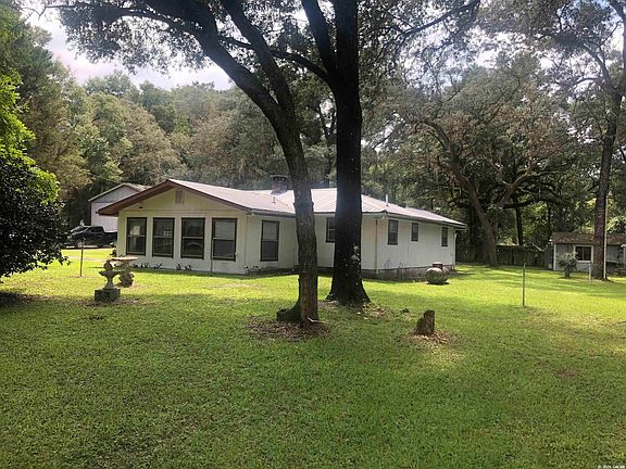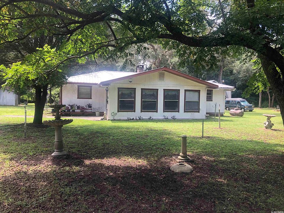 This 3 bedroom and 1 1/2 bath home sits on 1.47 Acres. Living room with wood burning fireplace and French doors. Laminate flooring in living area. Air Conditioned Florida Room with storage closet. Kitchen has stainless steel refrigerator and gas stove. Oversized Laundry room (Washer and Dryer Included) Enclosed screened Pool. Home sits on 4 lots with 2 septic tanks and 3 wells on site. Huge workshop, Large Enclosed Pole barn and shed on site.