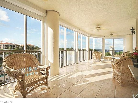 ONE OF THE MOST DESIRABLE RESIDENCES ON THE RIVER! The only direct riverfront corner unit presently available in The Shores. Captivating sunsets over the river from the oversized wrap-around screened balcony of this luxurious corner DIRECT front condo! Perfect 4th floor lever to enjoy the views and nature. Overlooks the deep-water marina, yachts, and private island out front. Enter stately double-door entry to your luxury residence nearly 3,400 SF of total space. Classic American inspired furnishings and décor. Spacious three bedrooms with the master suite overlooking river. Huge walk-in closets and formal entry foyer. Tile flooring and carpet. Electric storm shutters on balcony. This residence includes TWO garage parking spaces!! Don't miss out on this outstanding riverfront property.