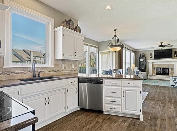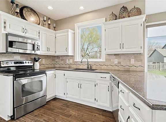 This gorgeous two-story home is perfectly located on a cul-de-sac, featuring beautifully painted cabinets, granite countertops, tile backsplash, and an open floor plan, which includes updated tile floors that run throughout the entry, kitchen, and family room. The main level also features an updated half-bath, as well as a dining room and extra TV room/office. The upper level includes a spacious owner's suite with updated tile shower, large tub, and dual vanities. The upper level is completed by three additional large bedrooms, together with an updated guest bathroom, attic fan, and convenient laundry room. The lower level is finished, providing about 800 square feet of a great space for a play area, or for gatherings, workouts, or watching a game. An added bonus to the lower level, is a nifty craft/virtual learning desk. This home also features a huge fenced-in, level backyard, as well as a flat driveway and in-ground sprinkler system. This home is also well placed, near the elementary, middle and high schools.