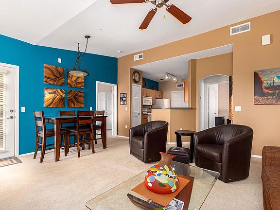 Welcome to this gorgeous 2bed/2bath townhome located in the sought-after Renaissance Villas on the Park Community. Home features a spacious open floor plan, vaulted ceilings and a private balcony. Perfect for sipping your morning coffee. Well appointed kitchen boasts plenty of cabinets and counter space and bar area for extra seating. Master bedroom is complete with double vanities in master bath with soaking tub and separate shower. Sliding doors out to balcony. Large guest bedroom with attached bathroom. Move right in and take advantage of all the community has to offer including a pool, spa, fitness center outdoor fireplace, BBQ grills, club house and so much more. Don't miss out on this incredible opportunity. See it today!