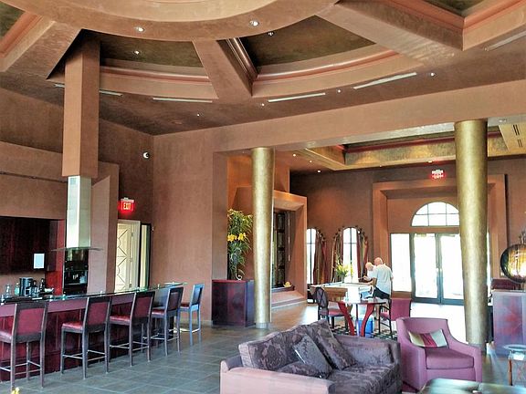 This is one of the largest single level, 1 bedroom units in the complex. It has 9 foot flat ceilings throughout, has a large tandem 2 car garage that connects directly into the unit itself and is located entirely on the ground level. The club house, BBQ area, recreation/workout room and community pool is directly across the walkway. The refrigerator has water and an ice maker. Washer and dryer included. Just park in front of the club house and simply walk a few feet to the east and you will be at the front door. The furniture that is there can be easily removed. Or, for $200/month more rent per month, seller will leave all furniture and personal property as you see it, tenant's choice.