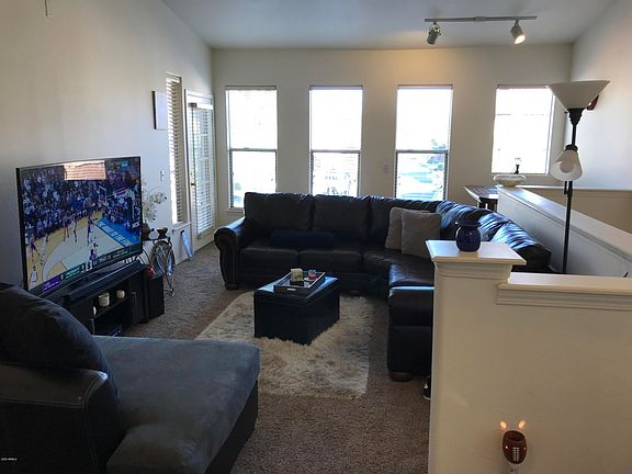 Available June 1st. Check out this great condo for rent in gated Renaissance Villas on the Park! Desirable Litchfield Park location is close to schools (Litchfield Elementary, Western Sky Middle and Millennium H.S.) as well as shopping, restaurants, spring training, Westgate and other entertainment venues. Enjoy the resort like amenities which include: heated swimming pool, hot tub, gym, BBQs, outdoor fireplace and more! This upper one bedroom unit has a functional floor plan and features an attached tandem garage with plenty of storage. The unit has upgraded carpeting, vaulted ceilings, ceiling fans, appliances including a washer and dryer and a large covered balcony. Monthly rent includes sewer, water and garbage. At $1,100/month this unit offers a great value in a desirable location.