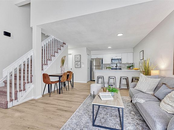 Welcome to this stunning 2-bedroom, 3 bathroom condo ideally located near Olympic Park & Cherry Creek State Park w/ easy access to I-225 and the Light Rail Station. You are greeted with impressive VAULTED CEILINGS that welcome tons of natural light and a statement fireplace wall that provides a cozy yet stylish addition to your living room! You wide open floor plan combines with a REMODELED KITCHEN featuring new cabinets, sparkling quartz countertops, SS appliances and an eat in bar that incorporates elegance combined with amble storage. Retreat to the PRIMARY SUITE w/more vaulted ceilings and an EN SUITE BATHROOM with custom tile work giving it a distinctive and modern flair. There is no shortage of space in this efficiently laid out condo that incorporates a fully finished basement featuring a wide open living room or bedroom w/a 3/4 spacious bathroom! NEW FURNACE AND AC! Weather and additional storage is no concern with your DETACHED GARAGE! Don't miss the opportunity to make this wonderful property your own. Schedule a showing today and experience the comfort and convenience this home has to offer. Feature Card: Only a 10 minute walk to the Iliff Station light rail and RTD bus stop Easy access to I-225 10 minutes to the Cherry Creek Reservoir 15 minutes to the DTC and Anschutz Medical Campus 25 minutes to DIA