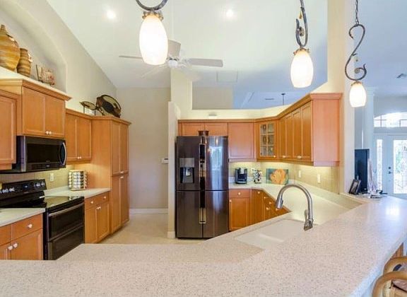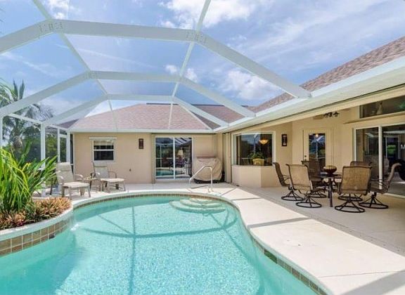 IMMACULATE 3/2/3 WATERFRONT POOL Located within minutes from beautiful beaches and barrier islands! Built in 2005 by Newport Homes, the home features an open, engaging floor plan that extends to the outdoor living space. The home offers vaulted and tray ceilings throughout, 18X18 tile diagonal tile, 2 zoned HVAC system allowing the master suite to have its own system, plantation shutters, custom SELF-CLEANING pool featuring pebble tech finish and heater, 10X42 composite dock boat lift, boat lift cover and the list goes on and on! You will find a bright and sunny dining area, that molds perfectly with the open layout of this home! The master bedroom on the opposite side of house, has a view of pool. Home is completely tiled in the main area for easy cleaning! The oversized 3 car garage has side access & plenty of storage. THIS IS AN ABSOLUTE ***MUST SEE !***