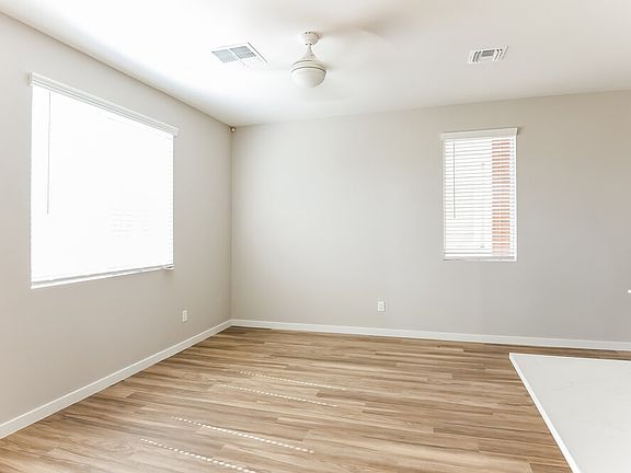 Phoenix, AZ's Community of Arise on 7th Street is home to this fantastic three-bedroom and two-and-a-half-bathroom rental home just waiting for you to move in. With an attached garage in addition to 1,710 square feet, this two-story smart home has plenty to offer. Step past the stylish and modern exterior to find a sizable living room with wood-look flooring, big windows, and an open-plan layout that flows right into the kitchen. There, you'll find lots of meal prep space on the center island, a handy double-door fridge, and lots of storage space in the pantry. The downstairs half-bath is just steps away. You'll love how roomy the upstairs primary suite is. It comes with a lighted ceiling fan and a private bathroom with dual sinks. Apply today to take an in-person tour.