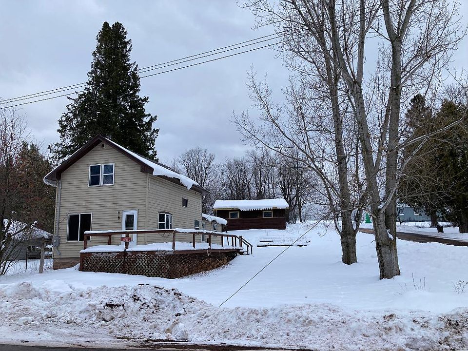 CALLING ALL SNOWMOBILIERS!! This 3 bedroom home, with vinyl siding, a metal roof, newer windows, newer drywall, and a newer gas hi-efficiency furnace, is located on a double corner lot across from the snowmobile trail. The detached two car garage, with room for extra parking, offers space to store your car plus machines. Want the convenience of a bedroom, bath and first floor laundry area on the main level? This home has that, also. Not into snowmobiling, no problem, this home has been in the family for 30+/- years and is a great home! Come and check it out!