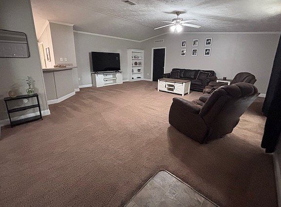 - Bookcases, Breakfast Bar, Ceiling Fan(s), Crown Molding, Decorative Lights, Open Floorplan, Split Floor Plan, Walk-In Closet(s), Wood Cabinets