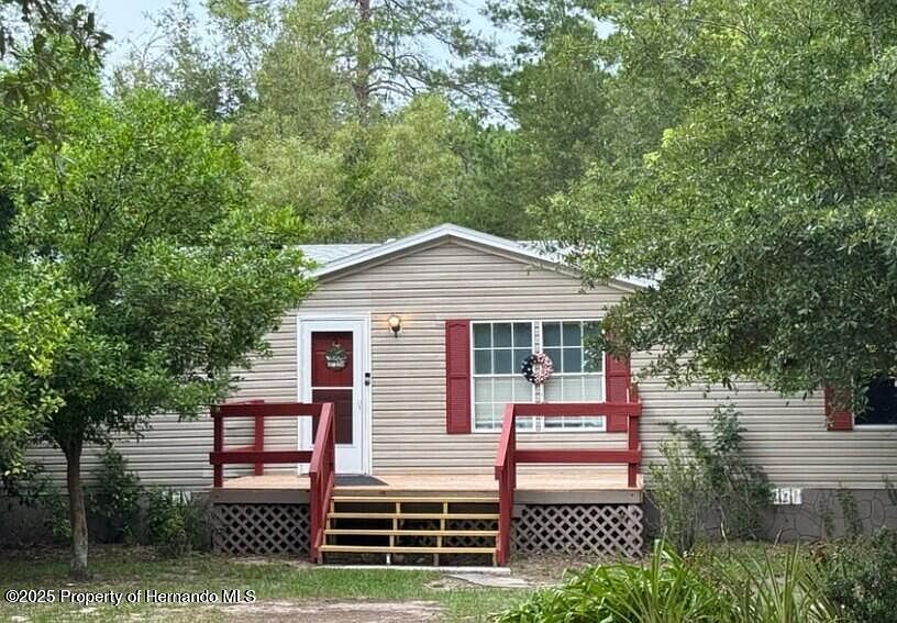 BACK ON THE MARKET!! Spacious & Serene — 4BR + Office on 2.5 Acres! Tucked away on a peaceful 2.5-acre wooded lot, this beautifully updated 4-bedroom, 2-bath home offers over 2,000 sq ft of flexible living space—plus a dedicated office, formal dining room, and cozy den with a wood-burning fireplace. Inside, you'll find warm, modern finishes including newer laminate wood flooring throughout, vinyl in wet areas, and fresh interior paint (2023). The spacious primary suite features a new walk-in shower (2023) and a large soaking tub, creating your own private spa escape. A generous kitchen with eat-in space, walk-in pantry, and indoor laundry room provides comfort and convenience. This layout is ideal for today's lifestyle—with multiple living areas, room to work or homeschool, and plenty of storage. The washer and dryer will stay with the home for added value. Recent upgrades include a new roof and leach field (2019), HVAC ductwork and unit refurbishment (2024), full-house sealing by Terminix (2024), new fencing and raised 8x12 shed (2024), and a new front deck and storm door (2025). Enjoy the best of country living with a private well and septic, central heating and air, and no water issues—even during heavy rains or hurricanes. Outdoors, you'll find mature trees, open space, and fruit-bearing orange, lemon, kumquat trees and grapevines to enjoy. Whether you're dreaming of a homestead, family retreat, or peaceful escape with space to breathe—this home has the land, layout, and updates to make it happen. Bring your vision and step into the life you've been waiting for.