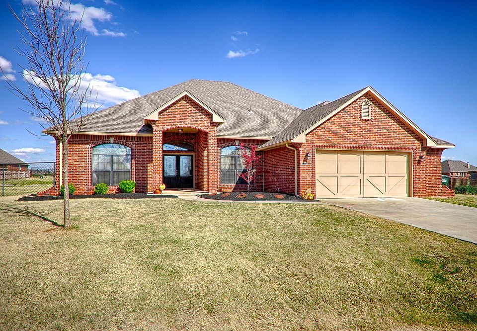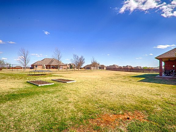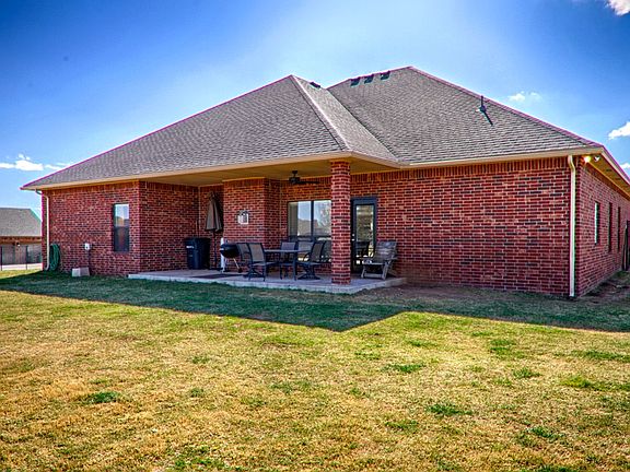 NEW LOWER PRICE! Within 15 minutes from the Kilpatrick Turnpike! This home is on a .75 acre lot in Deer Creek Schools! Flexible floor plan w/ Family Room and 2 BONUS ROOMS that can make a great media room, office, or even a formal dining. Open concept kitchen, dining, and family room! Family room w/crown molding & upgraded scored stained concrete floors to look like gorgeous tile. Kitchen has lots of custom cabinets, a large island, breakfast bar, pantry, & stainless appliances. SPLIT FLOOR PLAN. All bedrooms have carpeting and large walk in closets that accommodate a 3 tier hanging system. Master Bath features separate double vanities, whirlpool tub, and walk-in shower. Jack& Jill Bath w/ double vanities, tub & shower combo. Large Utility Room w/tons of storage. 2.5 Car Garage w/LARGE IN GROUND STORM SHELTER that fits up to 10. Sprinkler system. Water Softener. Covered Patio w/ ceiling fan. Hot water tank 2015. Roof 2014. Fridge, washer, and dryer negotiable with good offer!