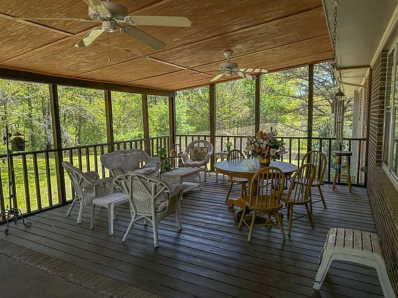 This property is beautiful! Comes with a spacious 3600 sq ft house. The house is a bit outdated but very well built. 5 bedrooms 3 baths. Updated kitchen with granite countertops. The main floor has two full bathrooms and 3 bedrooms, a living room, and a den with a gas fireplace. Very nice dining room. Screened-in porch for very peaceful sitting while listening to the handmade waterfall out back. The basement is fully finished. Has two bedrooms, one bathroom, and a large den with wood burning fireplace. House has a propane generator for power outages. Two-car garage. Brick siding. There is a 9-acre fenced pasture up front. The driveway is asphalt. A tractor shed with a tractor and bush hog comes with the property. The rest of the property is 8-10-year-old planted pines with multiple food plots.
