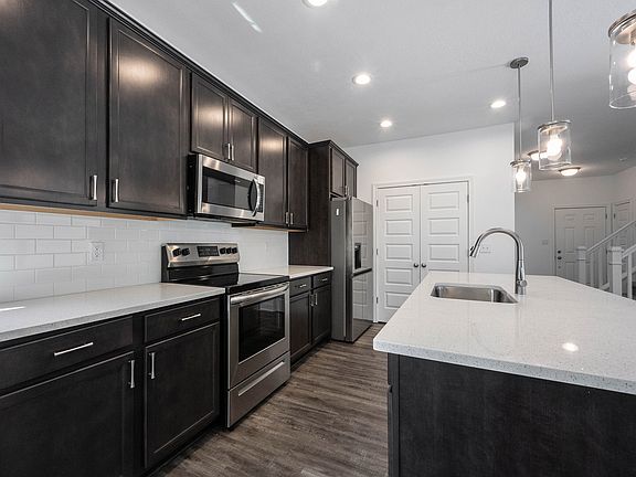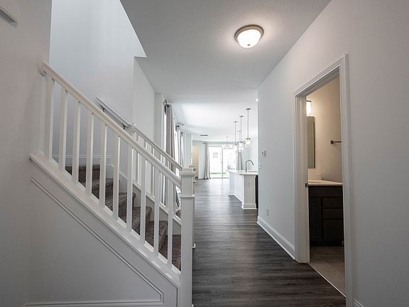 11 month old home. The home has a wonderful open floor plan that is perfect for entertaining and family get togethers. Nice kitchen with 42" cabinets, quartz counters, tile backsplash and all kitchen appliances included. A huge bonus is a main level bedroom with connected full bath making it perfect for guests who wish to avoid the stairs, a great office or bright cheerful exercise room. Upstairs are three good sized bedrooms, including the primary suite all with ample closet space. The large primary suite has an oversized walk-in closet, dual sinks, larger shower and separate water closet. Also for convenience, the laundry room is on the second level. Community pool & amenities are 1 block away!