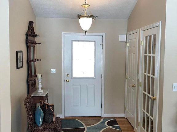 Waterfront! Immaculate home with style & flair! Open floor plan of the living room, dining rm & kitchen is highlighted w/hardwood floors, vaulted ceiling in LR & a wall of windows exposing the water view. Also features pocket doors to the master bath & laundry room, multiple French doors & sliders to the back deck & rain protected back patio. There are new appliances & rooms have been freshly