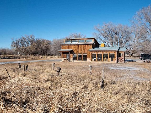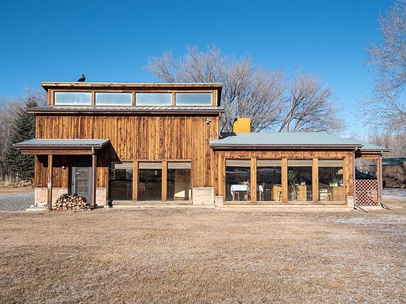 Super neat one-of-a-kind property with a very energy efficient passive solar home. This custom home includes an open living/dining/kitchen on the main level w/tile floors, wood stove in the living area, rustic wood cabinets, granite counters, and a cozy office tucked in under the stairs. Beautiful warm colors and lots of windows make this main level an inviting, bright space to live in. The second level includes a large bedroom w/built-in closet organizer and an absolutely COOL full bath that features a tub/shower w/custom tile surround, single vanity w/solid tile counter w/a beautiful glass vessel sink and tile floor. The primary suite claims the entire third level and includes built in drawers & cabinets, walk-in closet, a 2nd walk-through closet along the back wall for additional storage, a 3/4 bath & laundry room - and high windows along the entire south wall for that passive solar AND starlight views. Located on a .985 acre lot w/irrigation water, lots of gravel parking, 2 storage buildings - and solar panels for additional solar energy. No covenants. A truly unique, comfortable, energy efficient, beautiful home.