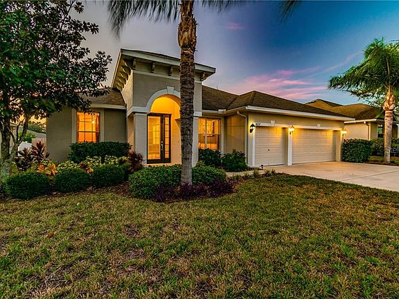 Move-in-ready 4 bedroom home, with a 3 car garage and fresh paint! Sterling Hill is a Master Planned community with a Gated-Entrance and 2 Clubhouses! The owner has meticulously maintained her home just for you. Step in and enjoy the bright and airy Florida lifestyle with open formal Dining and Living areas! As you walk into the main Family room, it opens up to the Kitchen and Dining area, all illuminated by the sun from the sliding glass doors. Truly a Split Floor Plan, you have a spacious Dining/Living room with Master suite on the Left and a hallway on the other side of the home with the rest of Bedrooms and extra full Bath, behind the Kitchen. The Kitchen is open w/ a generous amount of cabinetry, counterspace & storage. Fully fenced back yard has access to the 2nd bathroom, a perfect pool bathroom if you decide to install a pool later. Interior Laundry opens into a 3 car Garage w/ tons of space. Sterling Hill community amenities include tennis, basketball & sand volleyball courts, fitness, Olympic size pools, playgrounds, & meeting rooms. All staffed 8a.m. to 9p.m.*Verify amenities w/ HOA.