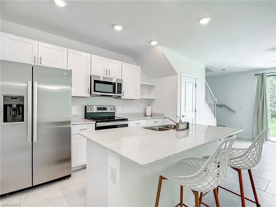This BRAND NEW pristine smart home townhome has never been lived in, offering you the opportunity to be the very first to enjoy its modern comforts. Boasting 3 bedrooms and 2.5 baths, this home is perfect for families or those seeking extra space. Step inside and discover a stylish interior featuring stainless steel appliances, a harmonious blend of carpet and tile flooring, and elegant quartz countertops. Every detail has been carefully chosen to create a contemporary and inviting atmosphere. The space beneath the staircase has been enclosed to provide additional storage or serve as a broom closet. Enjoy your privacy as the property backs onto a serene preserve. Backyard fencing permitted with HOA approval.(perfect for pet or child) $ 1,500 in owner updates-ceiling fans, over toilet cabinets, chandelier and kitchen chairs. The Portico Community provides a range of fantastic amenities for residents to enjoy. Engage in a friendly game of pickleball, tennis or basketball, take a refreshing dip in the community pool, or socialize at the clubhouse. Stay active at the gym, or let the little ones have a blast at the playground. Additionally, this community is conveniently located just a short drive away from I-75, shopping centers, delectable dining options, and more.