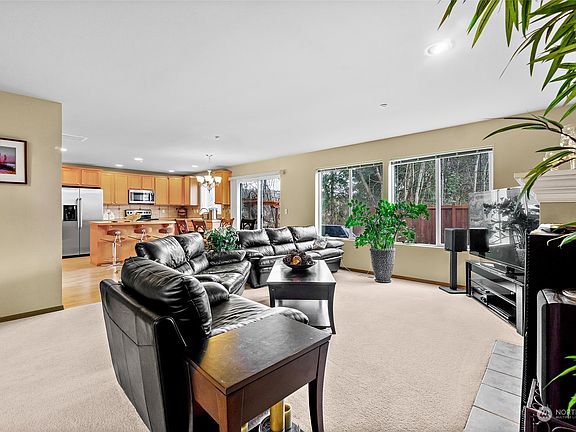 Better than new, this conveniently located home shines with 4 bedrooms, 2.5 baths, high ceilings and designer finishes throughout. Open concept Main level features living room w/gas fireplace, dining, one bed/office and gorgeous kitchen featuring large island, granite counters and s/s appliances. Upstairs you will find expanisve bonus room/loft area, two generous sized bedrooms, full bath and Primary Suite complete with en suite and walk-in closet. Patio off back leads to private, green-belt backed yard. Attached 2 car garage and just minutes to local shopping, dining, freeways and Boeing. Mukilteo SD! Welcome Home!