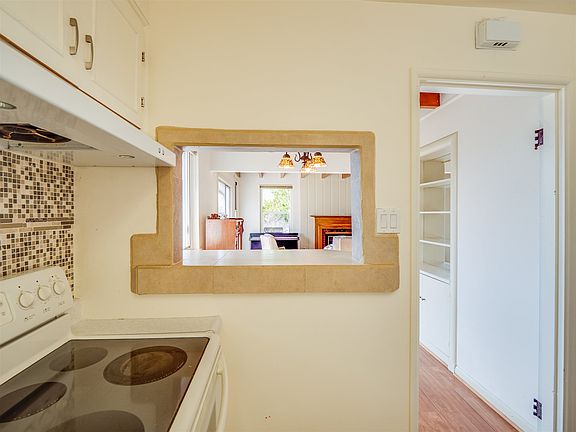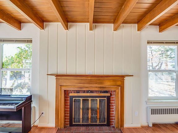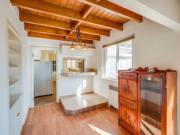 Western area home with original charm, some nice updates, and a great layout. This sweet home is located on a nice-sized corner lot. A covered brick porch with neat wood posts provides a welcoming entrance. Enter in to a spacious living area with original wood beamed ceiling, cozy wood-burning fireplace, and lots of windows. This space connects nicely to a pretty dining room with wood beamed ceiling, built-in shelving, large window, and a neat tiled bar area with pass-through window to the kitchen. The kitchen is bright with an updated pretty tile backsplash, tile flooring, and ample counter space. The kitchen also connects to the master area at the back of the home and to the hallway with the front guest rooms. The master is privately located at the back of the home and offers lots of storage and original wood flooring. It connects to the laundry space and a very nicely updated 3/4 bath with tile floor and neat tiled shower. Two good-sized guest bedrooms are located at the front of the home both offering lots of storage. The full guest bath has been updated and has tile flooring. The hallway has great built-in cabinets for all your storage needs. The home has laminate flooring in the main living spaces and front bedrooms. The generous backyard is fully fenced, has a wooden deck with two levels and a built-in bench, and provides plenty of outdoor space with lots of potential. The single car garage has been converted to a storage space. Great opportunity, don't miss it!