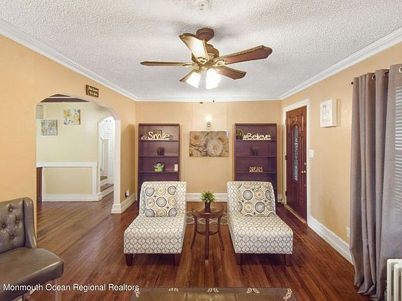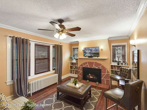 WOW! The perfect 3 beds, 1 bath, 1890 sqft home is now available for the Jersey Shore Crafts Cape style lovers! Settle in here and enjoy the charm and close-to-the-beach living. Featured: spacious living and dining rooms, gas fireplace with stone surround, gleaming hardwood floors, wide arched entryways, beamed ceilings, sky lights. Cook in style in beautiful newer kitchen w custom 42'' cabinetry, granite counters and stainless appliances. Also, pretty updated bathroom; office on 2nd floor and dry basement for storage. Entertain in the fenced in backyard and deck. There is a long driveway for your cars and rear shed. More? Bike ride to Asbury Park or Ocean Grove; NJ Transit and major roads are near by; enjoy area beaches, shopping and restaurants! Put this classic beauty on your list to buy