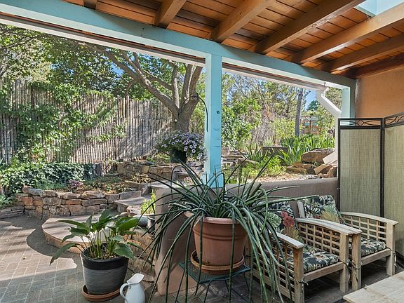 Welcome to this delightful Sanctuary, with a private Well, in the verdant Tesuque Valley. The pitched-roof, Contemporary Main House has an open concept floor plan, and over 2900 square feet of heated living space. Flooded with natural light, this Tesuque gem has a delightful chef's kitchen, spacious living/dining areas, and a separate media room. The primary living space offers direct access to covered outdoor living areas with tastefully landscaped gardens and mature trees. The splendid Master Suite has its own covered portal, a spacious walk-in closet, and an additional study or exercise room. The Master Bath has a soaking tub, a lovely walk-in shower, and double sink vanity with contemporary tile finishes. The guest bedrooms are well separated from the Master Suite and share a three-quarter bath. The self-contained Guest House is a Passive Solar Adobe structure with brick floors and rich wood vigas-perfect for visitors, or additional rental income. This charming property is located just a few minutes drive from downtown Santa Fe, yet it affords the privacy and peaceful lifestyle of country living, with plentiful outdoor living spaces, gardens, and mature fruit and shade trees. This unique home is surrounded by several other multi-million-dollar estate properties, and is close to Trailheads for great hiking opportunities.