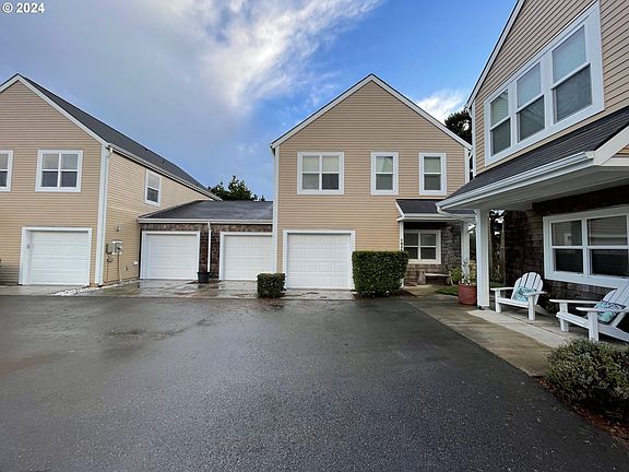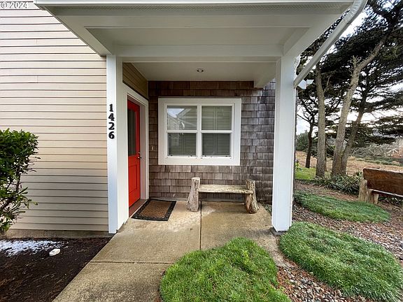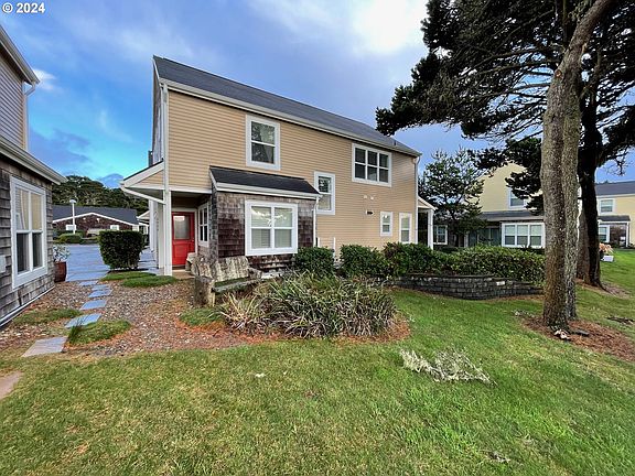 Enjoy simple, trouble-free living in Bandon Commons, one of Bandon's premier and desirable neighborhoods. From this home, walk five minutes to the beach-access stairs at Coquille Point, where you can watch whales and shorebirds. The Bandon Commons neighborhood is 32 fine homes with a Homeowner's Association that manages all aspects of landscaping and exterior home maintenance. This beautiful, pond-view home is located on the coveted west side of the community. It enjoys picturesque views of coastal pines, grounds, water and sunsets. It also has a concrete patio for dining al fresco. Enter the home through the covered front patio into the entry living room, which features built-in seating and bookcases, as well as under-seat storage. Proceed down the hallway into the open concept kitchen and spacious living room. The living room has a custom built-in lighted bookcase and cabinets, stone tile surround on the propane fireplace, and south-facing picture windows. All ground floor windows have plantation shutters for added privacy and aesthetic appeal. The kitchen features under-counter lighting, built-in microwave, and a breakfast bar. The upper floor includes three bedrooms and two full bathrooms. The primary bedroom has vaulted ceilings, en-suite soaking bathtub, shower and double sinks. All countertops throughout the home match. 1426 Boxwood has fiber-cement siding, double-pane vinyl window frames, cherry-wood floors, alder cabinetry, and granite counter tops. Also included are all stainless steel appliances, plus a washer and dryer set. The owners are also offering for sale select pieces of furniture if this is of interest to buyers. The quiet neighborhood of Bandon Commons is nestled in the heart of Bandon, and is within walking distance to the beach, City Park, library and the jetty. This home is in fantastic condition, both inside and out.